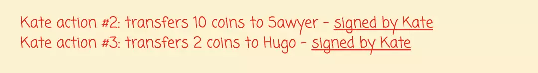 凯特动作#3:向雨果转账2个币 - 凯特签名