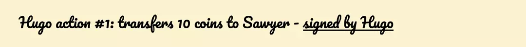 雨果动作#1:向索耶转账10个币 - 雨果签名