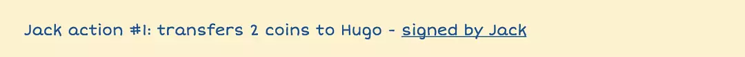 杰克动作#1:向雨果转账2个币 - 杰克签名