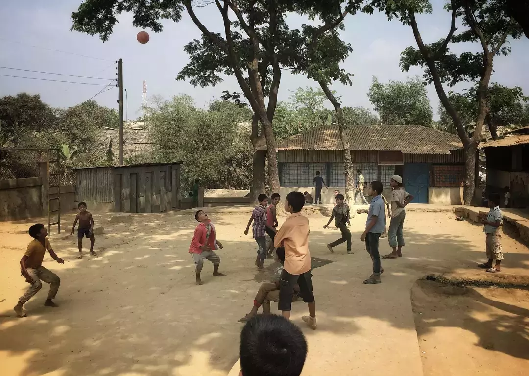 难民营的茶棚矮小逼仄,苍蝇横飞,孟加拉常态。约十平米的店里坐着四五个男人,喝茶、发呆、一声不响。老板背后的货架上稀稀拉拉摆了些零食,像快要秃顶的男人强留住几缕头发,反而显得更窘迫。穆罕默德点了茶,我径直走到靠里墙的座位坐下,与众人微笑示意,两三个男人点头,嘴里念念有词,算是回应。穆罕默德在我对面坐下,我们都没有说话,等茶。屋外燠热聒噪,屋里无声无聊。